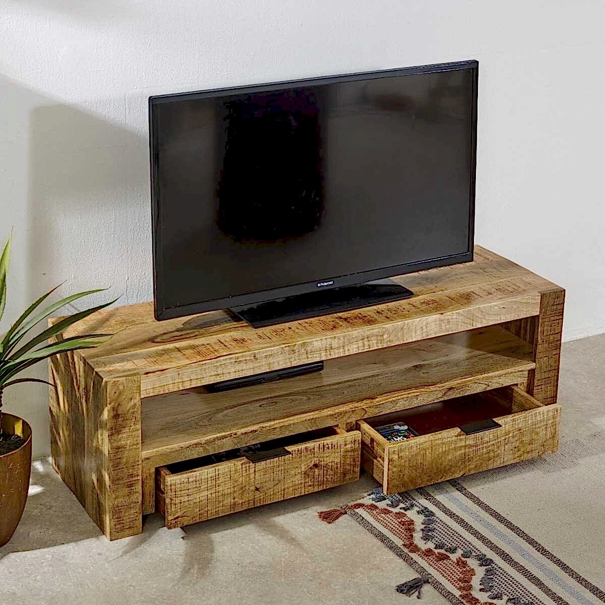 Surrey Solid Mango Wood TV Stand With 2 Drawers