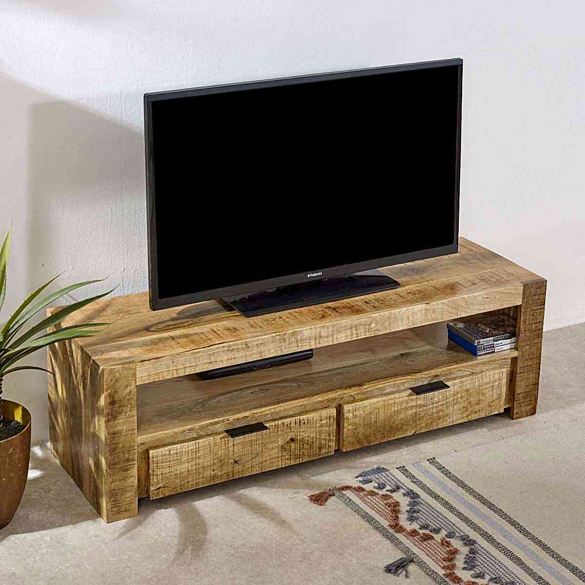 The Surrey Solid Mango Wood TV Stand With 2 Drawers is a good-sized stand that works in almost any traditional or modern space.