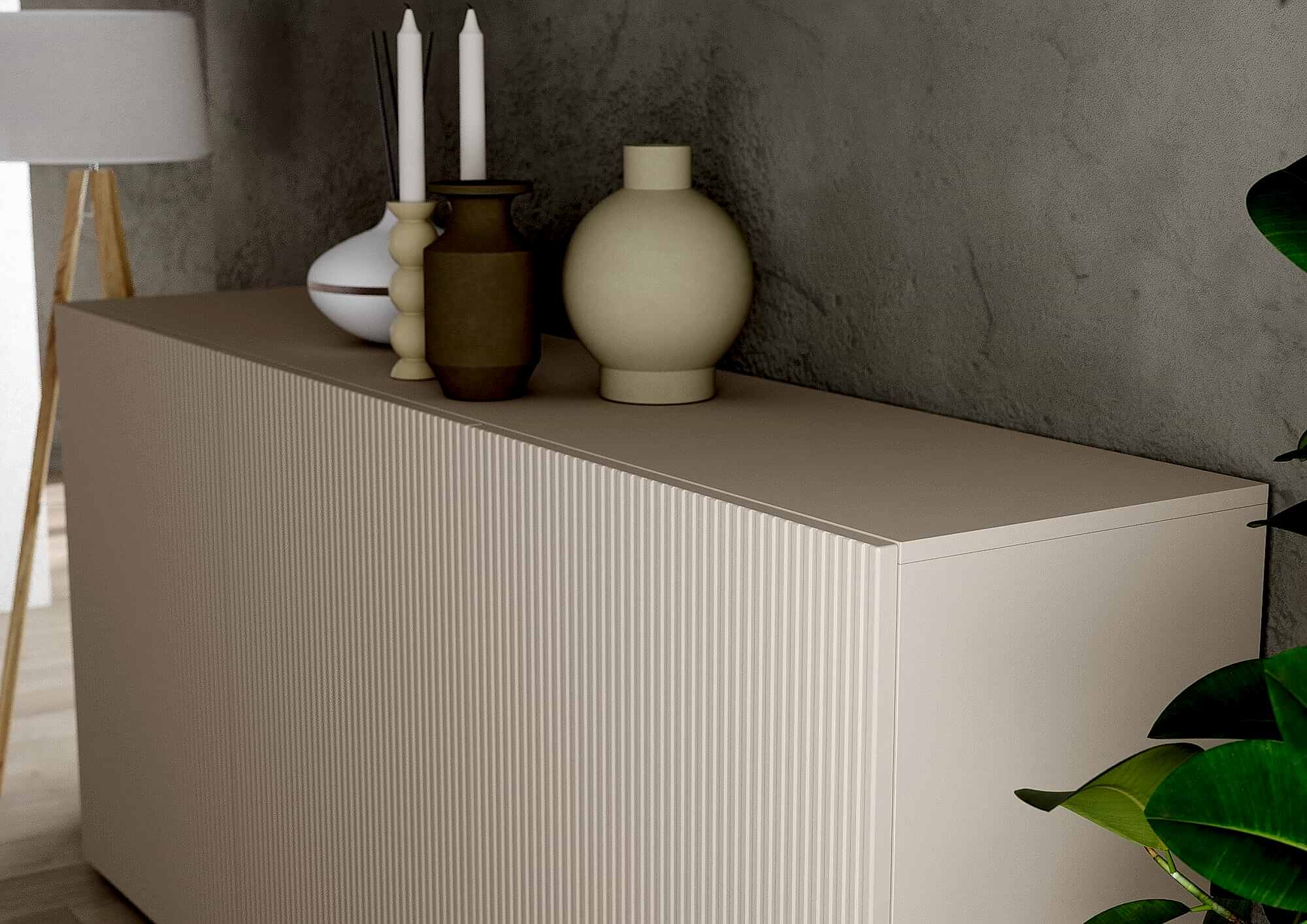 Finished in cashmere, with an eye-catching fluted door detail, this is a stylish storage solution for contemporary interiors.